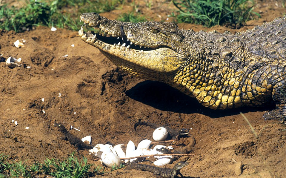 The great difference between the number of female crocodiles and male crocodiles, often as high as 10 females per male, is not coincidental. Studies have shown that the sex of crocodiles is dependent on the temperature of the soil where egg incubation is taking place; if the temperature is cool, around 30 °C, the hatchlings are all female, while in warmer temperatures, around 34 °C, all hatch males!